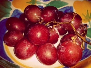 Sarapan pagi ini anggur, pepaya dan mangga. Sambil menyesal kenapa kemarin lupa minta obat jerawat sama Obgyn-nya. Ini jerawat udah merambah leher dan dada. Oh yeah hormon oh hormon :))