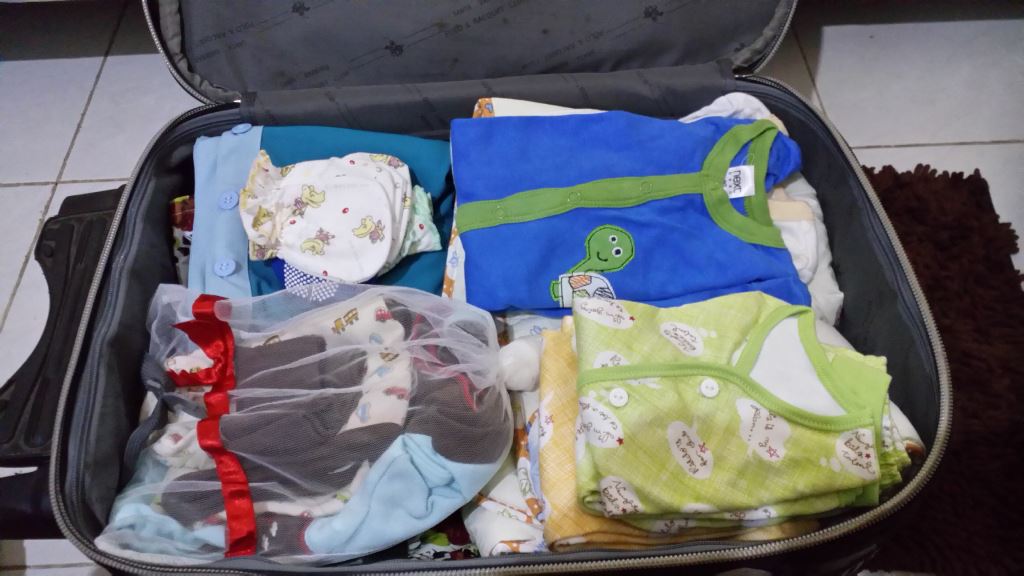 - Beberapa set baju bayi. Saya bawa jumper. Hehe.