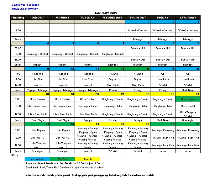 Bikin jadwal menu biar nggak pusing dan biar bisa mengontrol jadwal pemberian zat-zat penting yang dibutuhkan tubuh. Ohya, klik untuk memperbesar yaaa