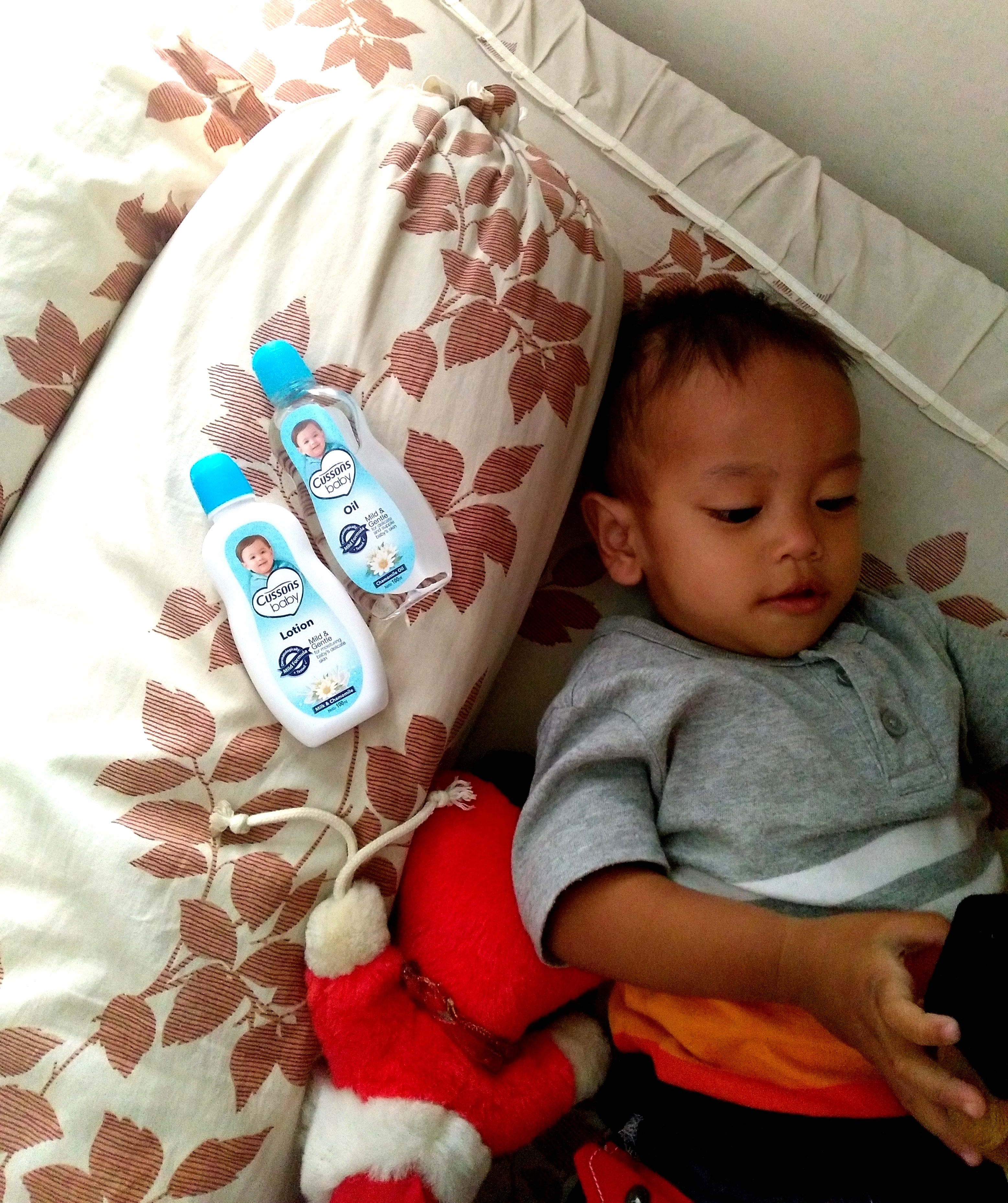 Sebelum tidur saya sering mendongeng dulu, sambil pijit-pijitian biar boboknya Baby B makin nyenyak. Kadang pakai body lotion atau baby oil dari produk Cussons Baby yang wanginya enak itu. (Foto ini diikutsertakan dalam lomba #CBK4)