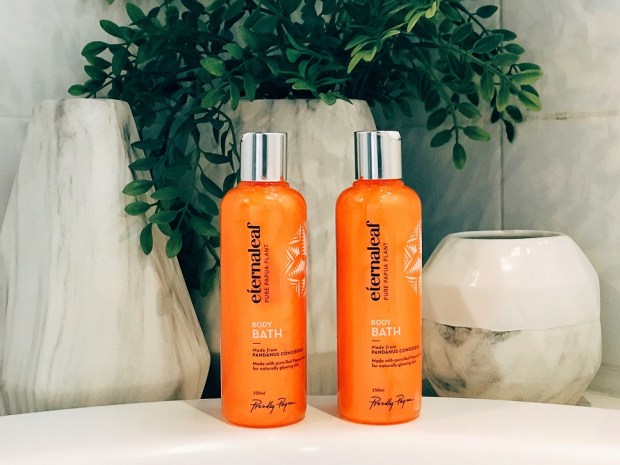 Sabun dengan warna oranye yang cerah ini mengandung Omega 3 yang melembutkan kulit dan Omega 6 yang membantu meregerasi sel kulit mati. Usapkan beberapa tetes Eternaleaf Body Bath ke badan yang basah dan rasakan sensasi lembutnya. Busanya tidak banyak namun wanginya bikin badan terasa segar dan kulit pun sehat serta tidak kusam karena Eternaleaf Body Bath dilengkapi dengan antioksidan yang membantu menyeimbangkan keseimbangan pH kulit. Selain itu kandungan Seleniumnya juga membantu mengurangi iritasi kulit apalagi kalau habis panas-panasan di pantai.