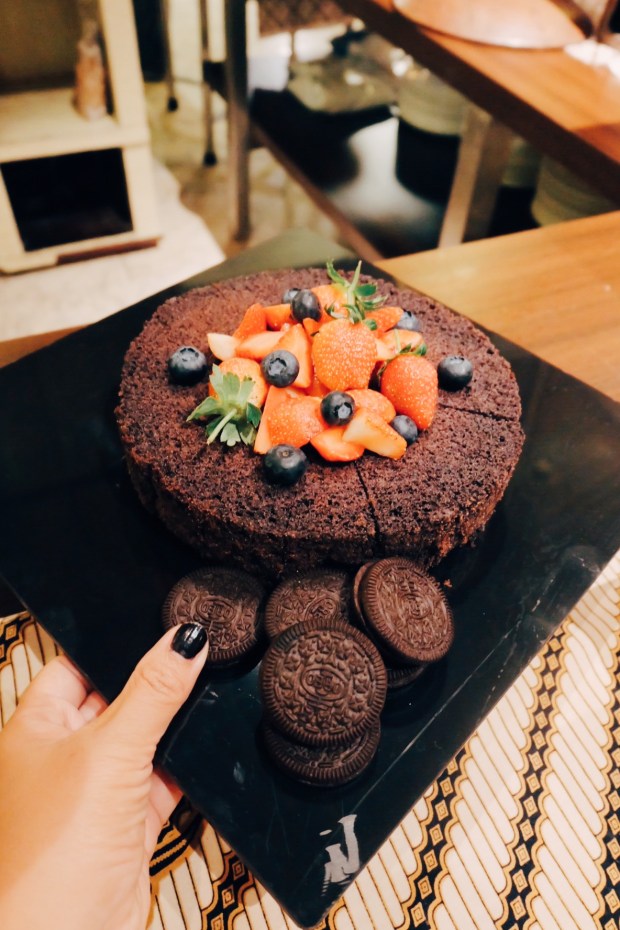 Kue Ketan Hitam. Saya nggak pernah nyangka kalo ketan item yang biasanya lengket itu bisa diolah jadi cake lezat kayak gini. Tampilannya trendi, rasanya yummy. Bikin ngiler banget deh apalagi dimamam pake es krim, saus karamel and remah-remah oreo, duh kok rasanya surge itu pindah sebentar ke mulut. Hehehe. Cukup merogoh IDR 38.000,- per porsi aja buat makanan pencuci mulut ini.