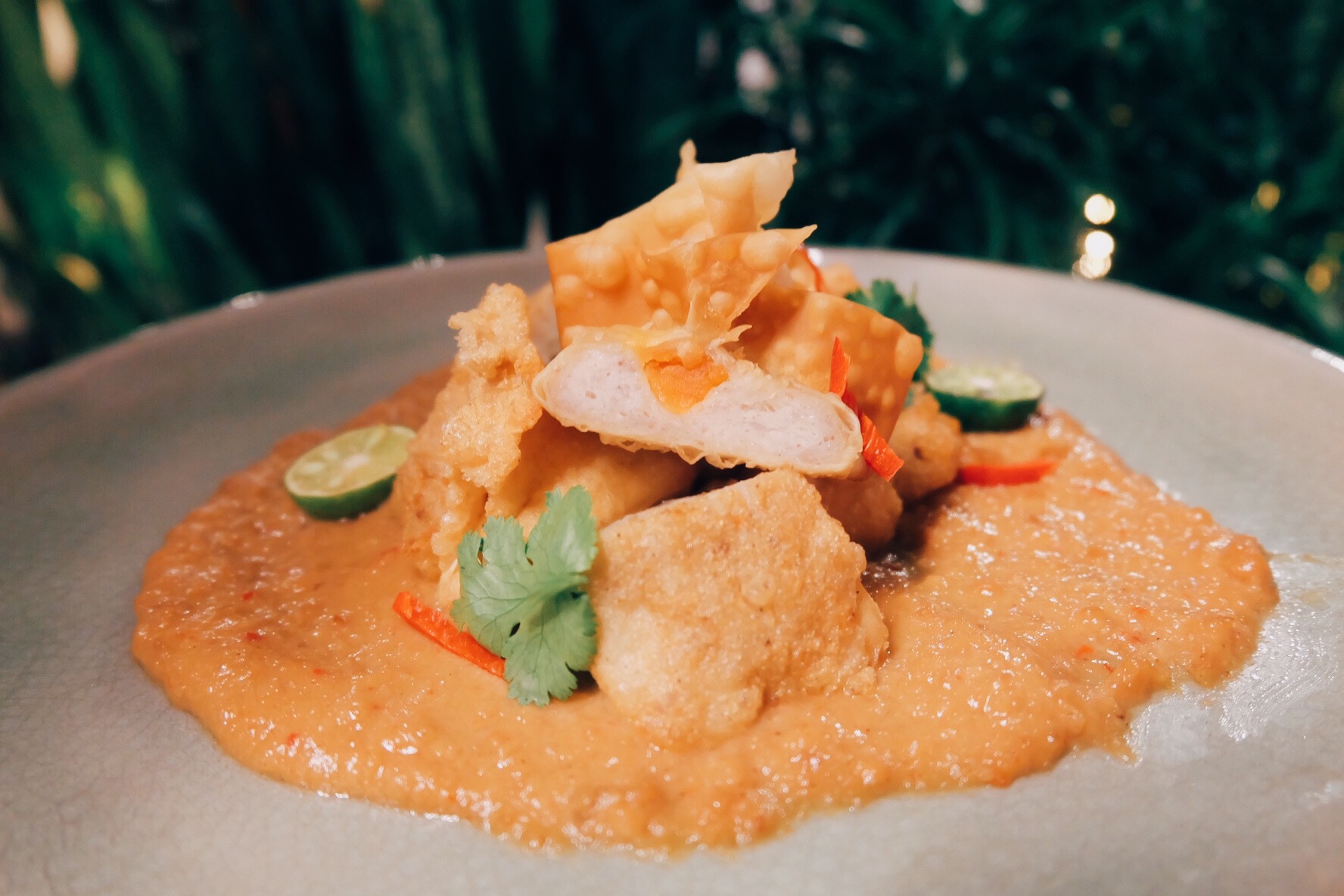 Batagor “Jewel”. Makanan yang udah jadi trade mark Bandung ini di tangan Chef Marinka menjadi empuk-empuk krispi-krispi gimana gituh. Minyaknya nggak bikin gatal tenggorokan, saus kacangnya kental banget, nggak pelit kacang deh. Yang beda, biasanya kan Batagor itu dimakan pakai telur rebus, kalau ini pakai telur asin. Ambil jeruk nipis seedikit terus tambahin saus ama kecap: sempurna! Endes! Sumendes. Seporsi dihargai IDR 55.000,- aja.