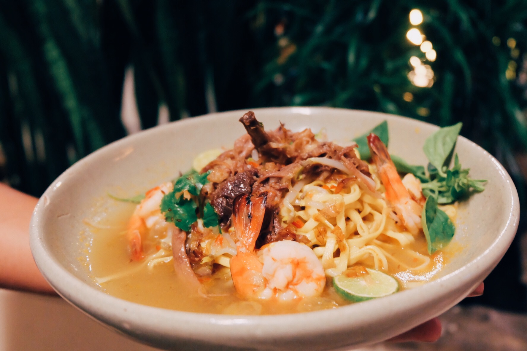 Mie Kocok “Tarik”. Mie klasik yang selalu jadi incaran wisatawan di Bandung ini cocok banget buat mengusir udara dinginnya Bandung. Kuahnya linght, asemnya pas, nggak reasy tapi kaldunya terasa tajam namun nggak berlebihan. Biar enak makannya pakai kerupuk kulit dan emping. Lho kok emping? Emang Mie Tarik pake emping makannya? Well, namanya juga kontemporer kan? Ya bebas dikreasiin dong ya… Semangkok enak gini dibandrol di IDR 65.000,-
