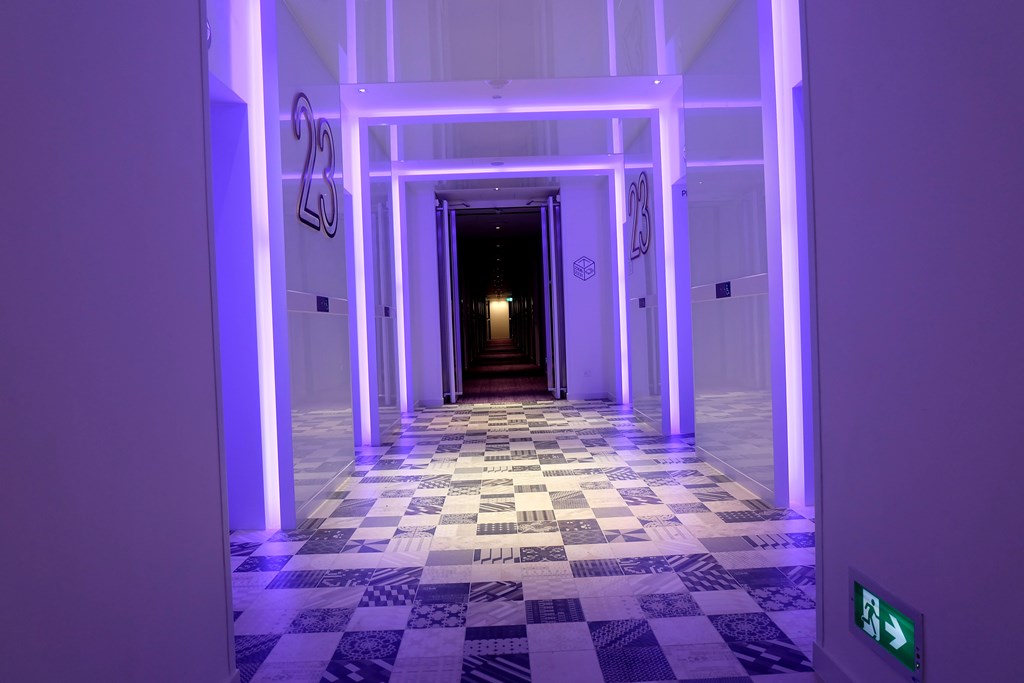 Suasana futuristik yang kekinian langsung menyapa saat memasuki lobby Yotel Singapore. Dominasi warna ungu, putih dan abu-abu menjadikan lobby Yotel seperti ruangan masa depan yang menggoda buat dijelajahi. Saya sampai di hotel sekitar pukul 01.00 pagi (iya, dini hari) dan petugas hotel langsung ramah menyapa. Walau pun dini hari, tapi ia tetap terlihat fresh dan bersemangat. Wah, saya yang udah terkantuk-kantuk pun jadi ikutan melek, ketularan semangatnya! Hehehe.