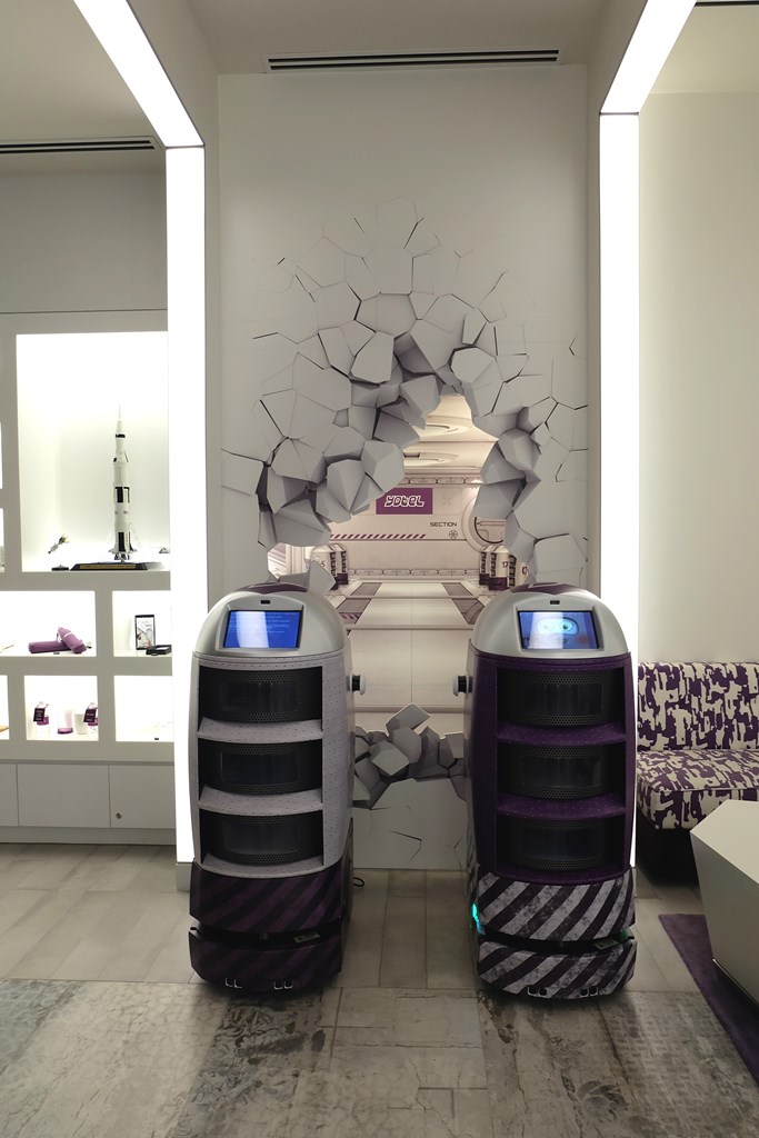 Lalu, di awal tadi saya bilang soal futuristic atmosphere kan? Iya, Yotel sedang mengembangkan robot yang bisa membantu melayani para tamu. Lucu banget! Jadi kalau kita butuh sesuatu, si robot-robot ini bisa ngambilin buat kita lho. Plus di lobby pun ada self check-in and check out counter jadi apa-apa bisa cepat.